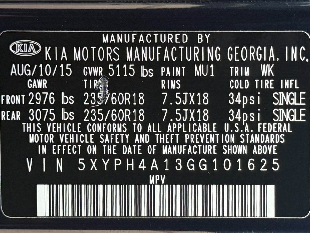 - Vehicle Name: Kia Sorento