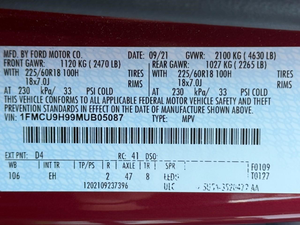 - Vehicle Name: Ford Escape