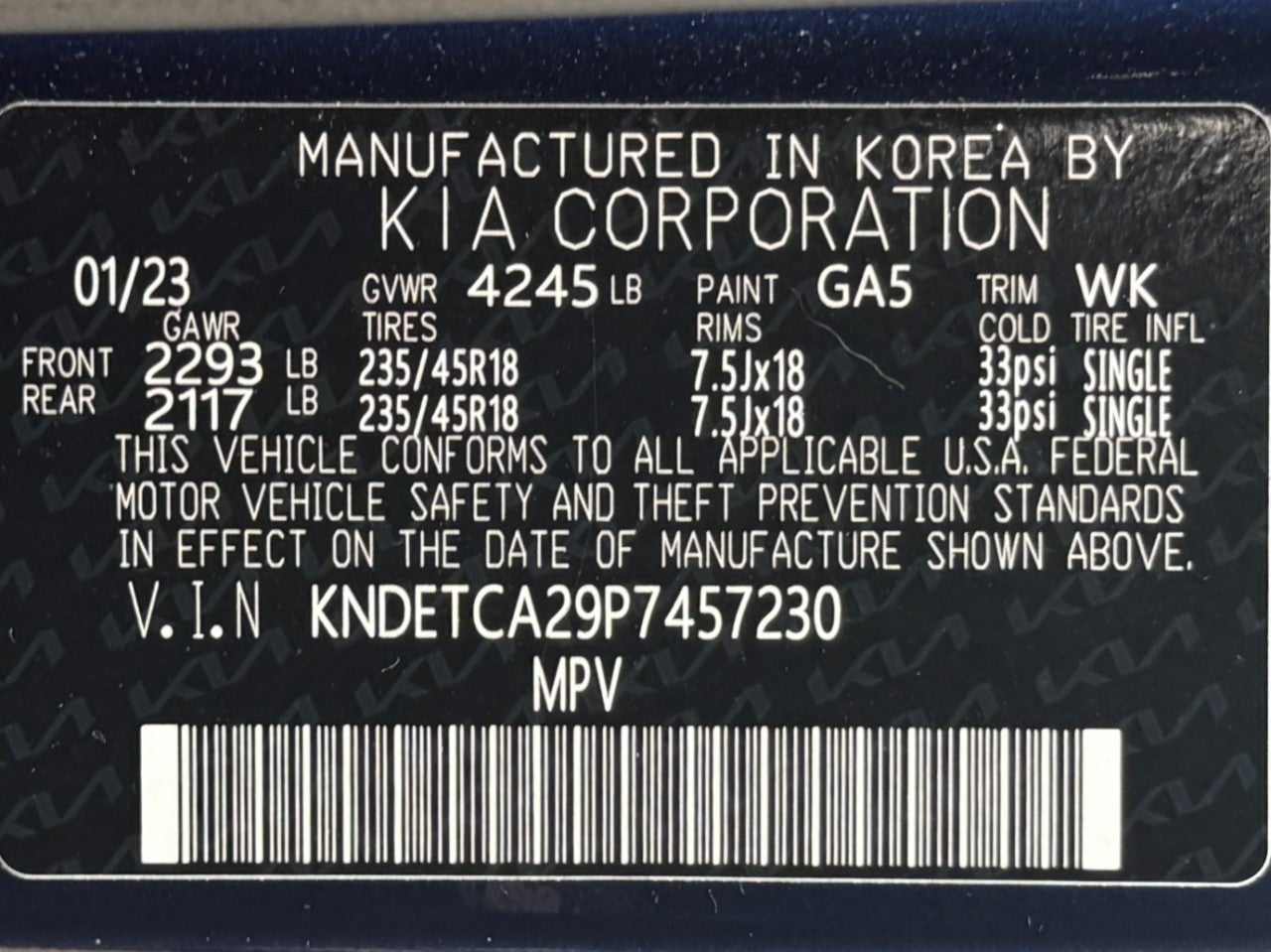 - Front Tire Size: P235/45HR18